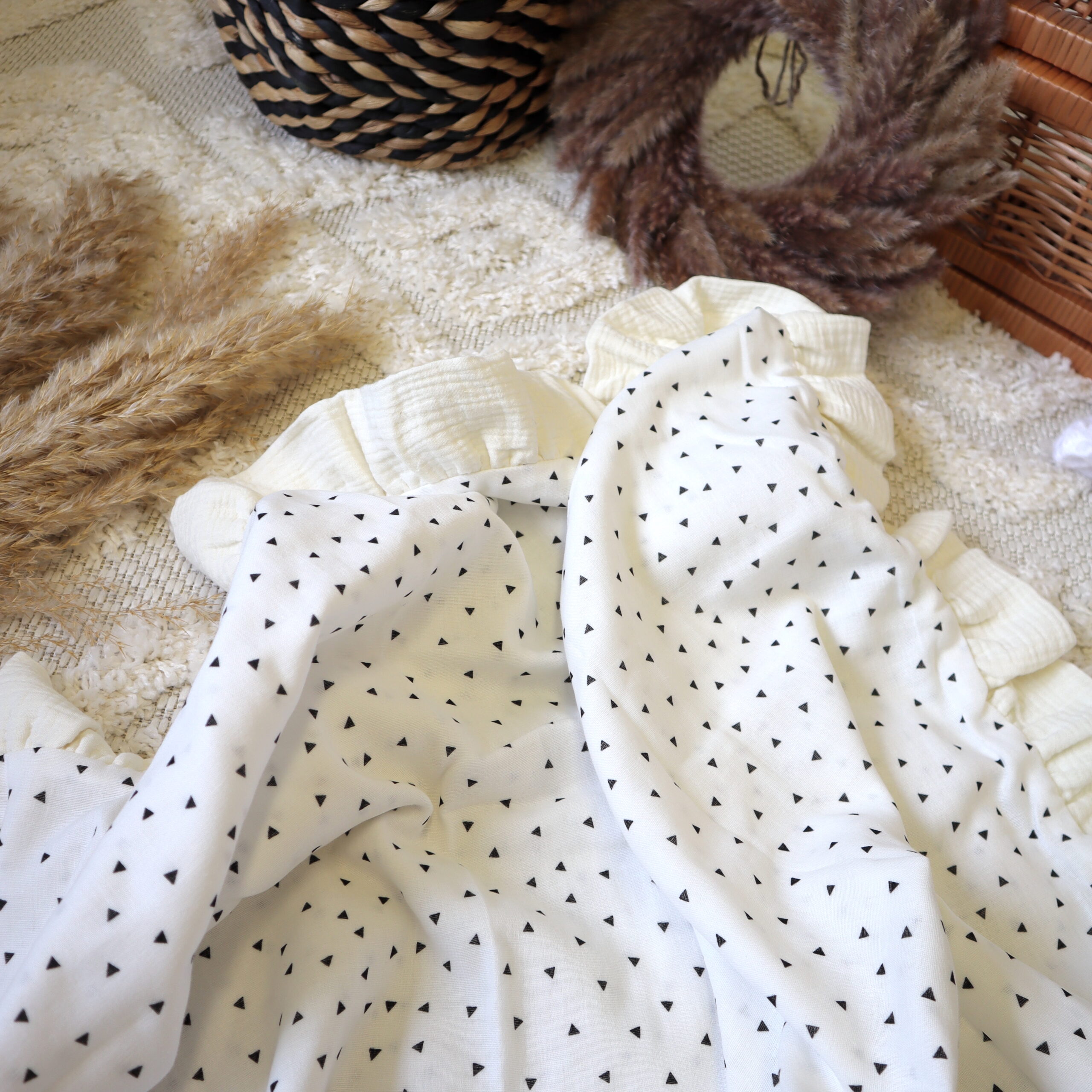Another versatile product from our popular BabyNest collection is the extra soft 4-layer baby blanket made from 100% premium muslin. The 4-layer construction makes the blanket extra soft, fluffy and lightweight. It offers optimal breathability so that the child's skin can breathe freely, which is especially important in summer. The 4-layer muslin baby blanket can be used in many ways, e.g. as a light blanket in the stroller, as a favorite snuggle blanket for the baby and much more. The blankets are not only practical, but also stylish. The muslin baby blanket can be used on both sides and is available in different colors and patterns. Each blanket has been carefully designed to provide the smallest family members with a cozy, safe and stylish home.