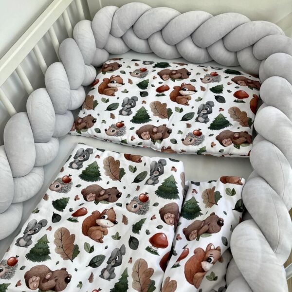 This rolled-up crib bumper protects your baby from bumps and knocks while allowing for optimal air circulation. It ensures a feeling of security and a peaceful sleep. The cover is available in various patterns to perfectly match your bedding. Filled with soft, hypoallergenic silicone beads and made from high-quality cotton, this bumper fits a 120x60 cm crib perfectly. It protects your child from bumps and knocks, allowing them to sleep safely and soundly. The roll-up design allows you to completely cover the crib bars, creating a perfect combination for your baby. Thanks to the subtle color palette and the option to use it on either side, it can easily be coordinated with your child's bedding. The exceptionally soft and comfortable cotton fabric provides superior comfort and creates a safe and child-friendly environment. This natural material is 100% cotton and does not cause irritation or allergies. The crib bumper is very soft and pleasant to the touch. It has a length of 180 cm and a diameter of 10 cm (+/- 1 cm).