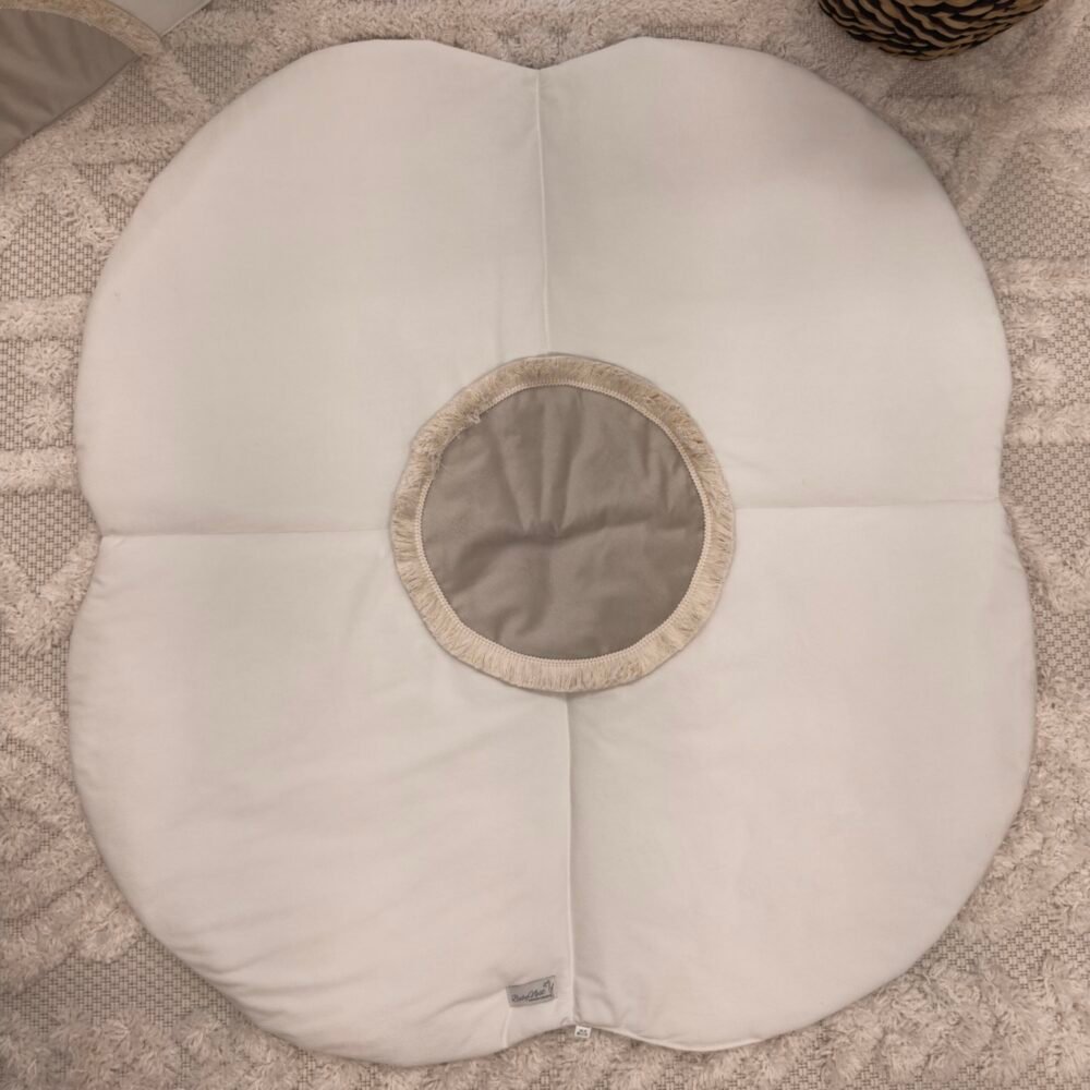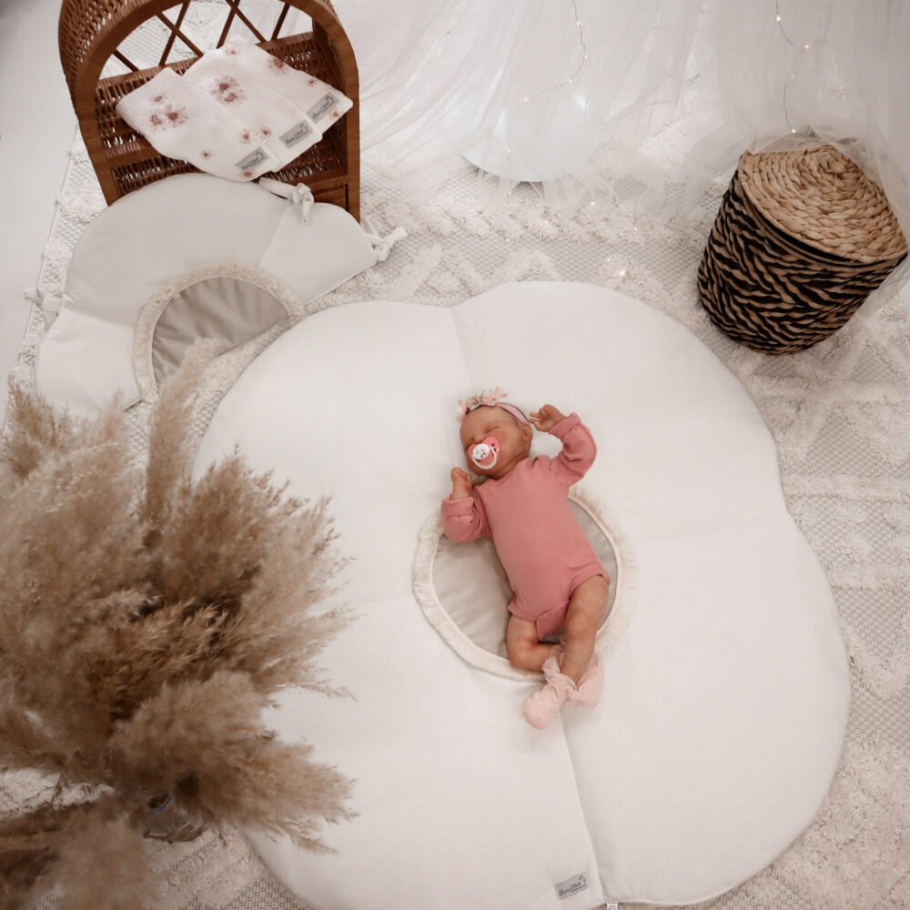 A beautiful, colorful playmat with a set of differently shaped sensory toys. It playfully encourages the development of the senses β sight, hearing, and touch. At the same time, it supports the development of manual and motor skills by encouraging the baby to move and grasp the hanging toys.