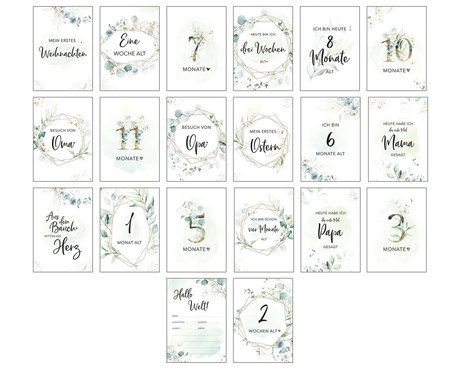 Milestone Cards Baby β Eucalyptus (German)