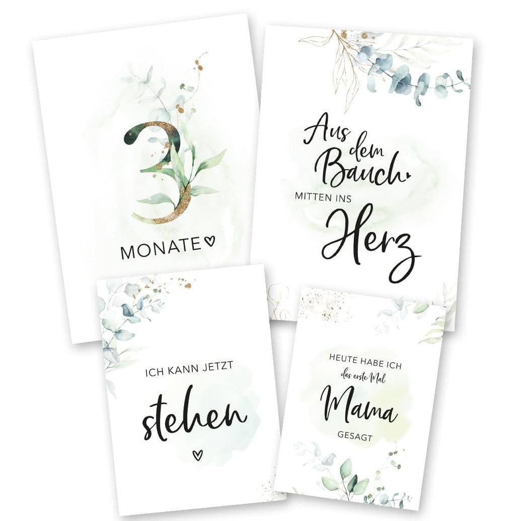 Every single set we make contains our heart and soul, our passion and a special dose of love β with the goal of bringing you/you allΒ wonderful snapshotsΒ to allow. Your unforgettable pictures in the photo album are our motivation. The milestone cards are made of high-quality 350g/m2 design paper and are coated on the front with a matt finishing varnish. We hold every card in our own hands and check it with the absolutely highest quality standards.