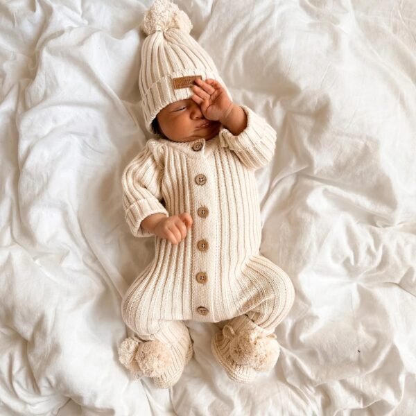 This beautiful and luxurious rib chunky knit romper from Little B's nursery is the new must-have in the modern baby wardrobe. The perfect keepsake for those first photos or the first outfit your little miracle comes home in.