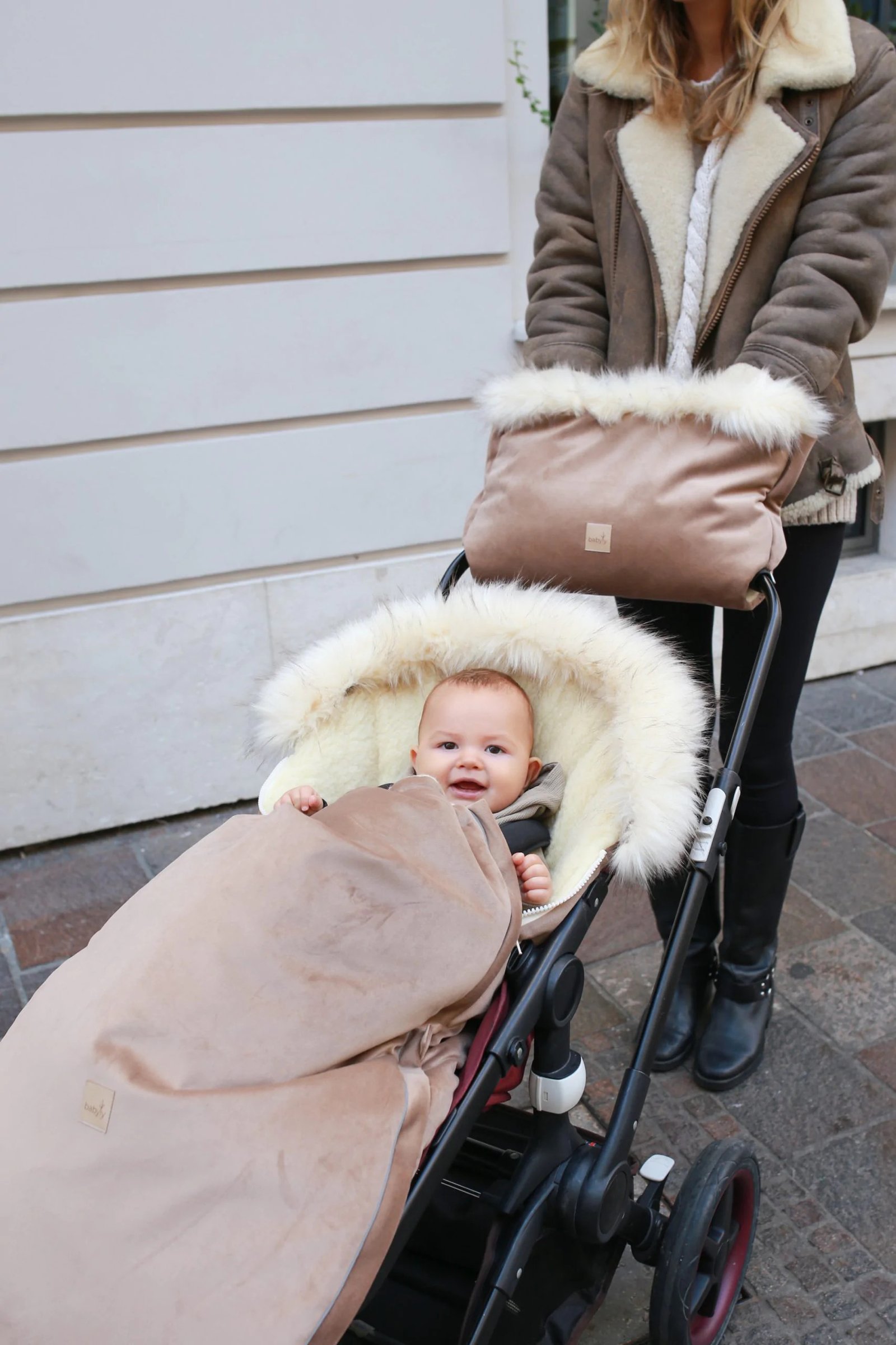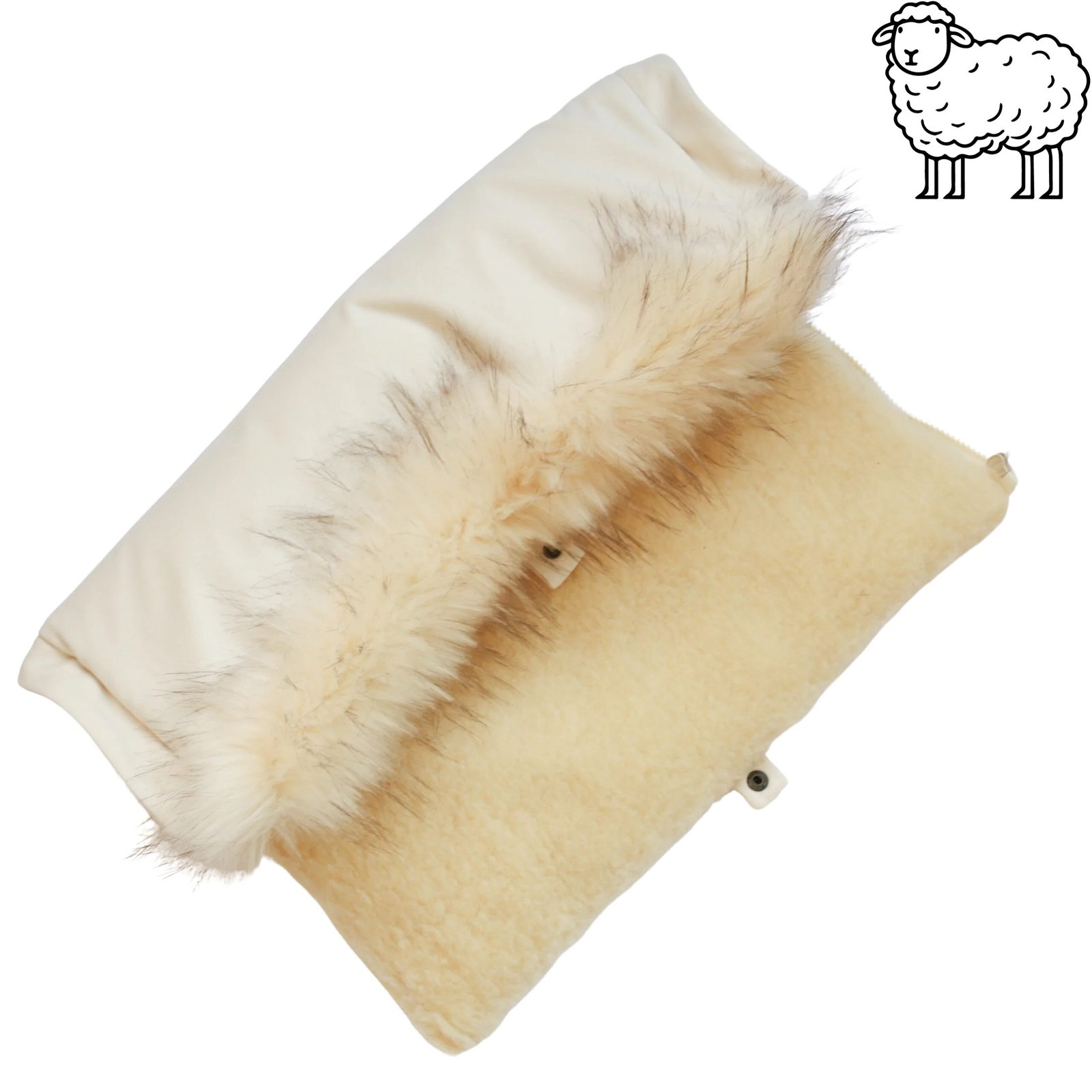 Der Woll-Handmuff für Kinderwagen sorgt für angenehm warme Hände und komfortable Spaziergänge – selbst an den kältesten Wintertagen. Dank seiner verlaengerten Form bedeckt er nicht nur die Haende, sondern auch die Handgelenke. Der Muff ist grosszuegig geschnitten und bietet auch fuer Maennerhaende ausreichend Platz.