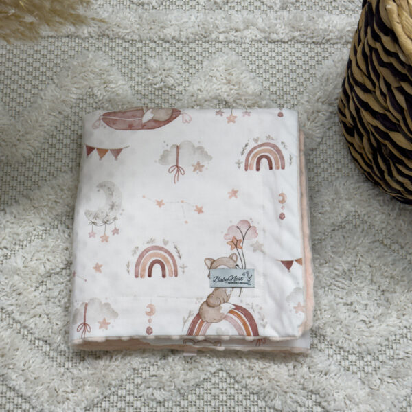 La populaire couverture Minky sans rembourrage convient à toutes les situations. La couverture se compose de deux couches de matériau : un côté en coton de haute qualité, doux et aéré et un côté en minky magnifique et populaire. Selon la météo, vous pouvez couvrir bébé avec le côté coton (plus frais) ou le côté minky (plus chaud). La couverture est disponible en deux tailles.
