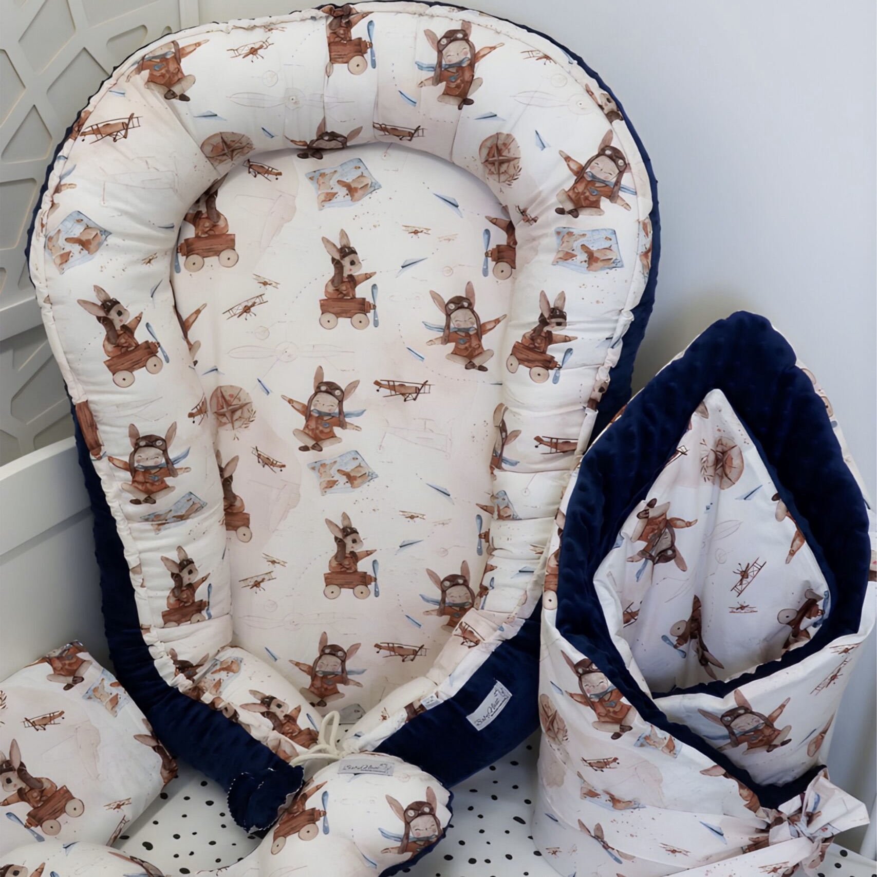 Baby Nest 4 Premium Set Flying Away Bleu Marine