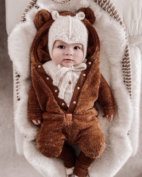 Salopette polaire avec oreilles| Coton GOTS | Teddy Caramel