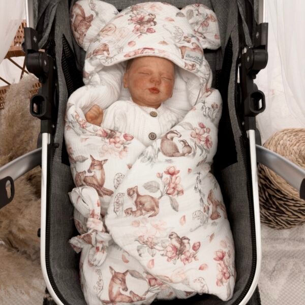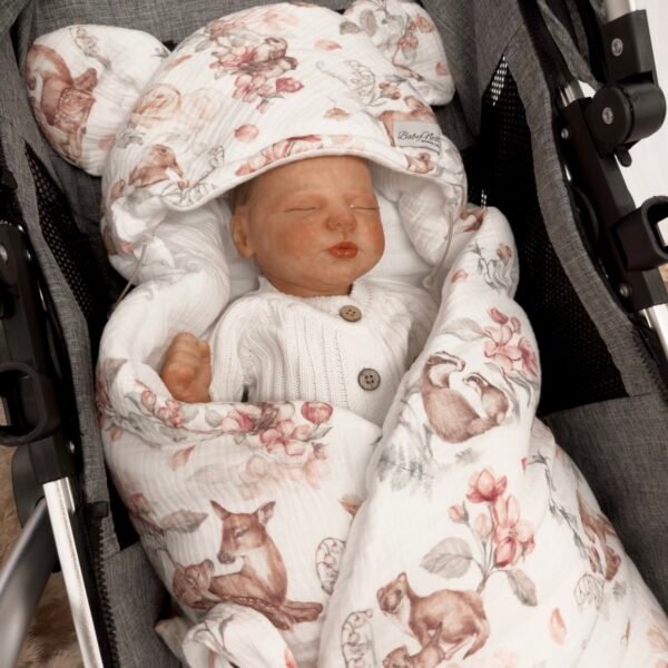 Notre couverture de voiture est fabriquée en coton 100 % de haute qualité et garantit des trajets en voiture confortables et sûrs avec votre bébé. Sa forme enveloppante est idéale par temps froid, gardant votre bébé bien au chaud. Par temps plus chaud, elle s'ouvre facilement pour éviter la surchauffe et la transpiration. Son cœur est garni de polaire siliconée hypoallergénique à poils longs pour un confort optimal. Le rembourrage est solidement cousu au tissu extérieur, ce qui l'empêche de se déplacer au lavage. Âge et utilisation : De la naissance à environ 12 mois – idéal pour les nouveau-nés et les bébés de moins d'un an. Convient aux sièges auto pour nourrissons de classe 0+ (0-13 kg). Consignes de sécurité : Les ouvertures pour le harnais permettent un passage correct de la ceinture de sécurité. Assurez-vous que la ceinture de sécurité est toujours correctement attachée pour une protection maximale. La couverture ne doit pas gêner le passage de la ceinture de sécurité.