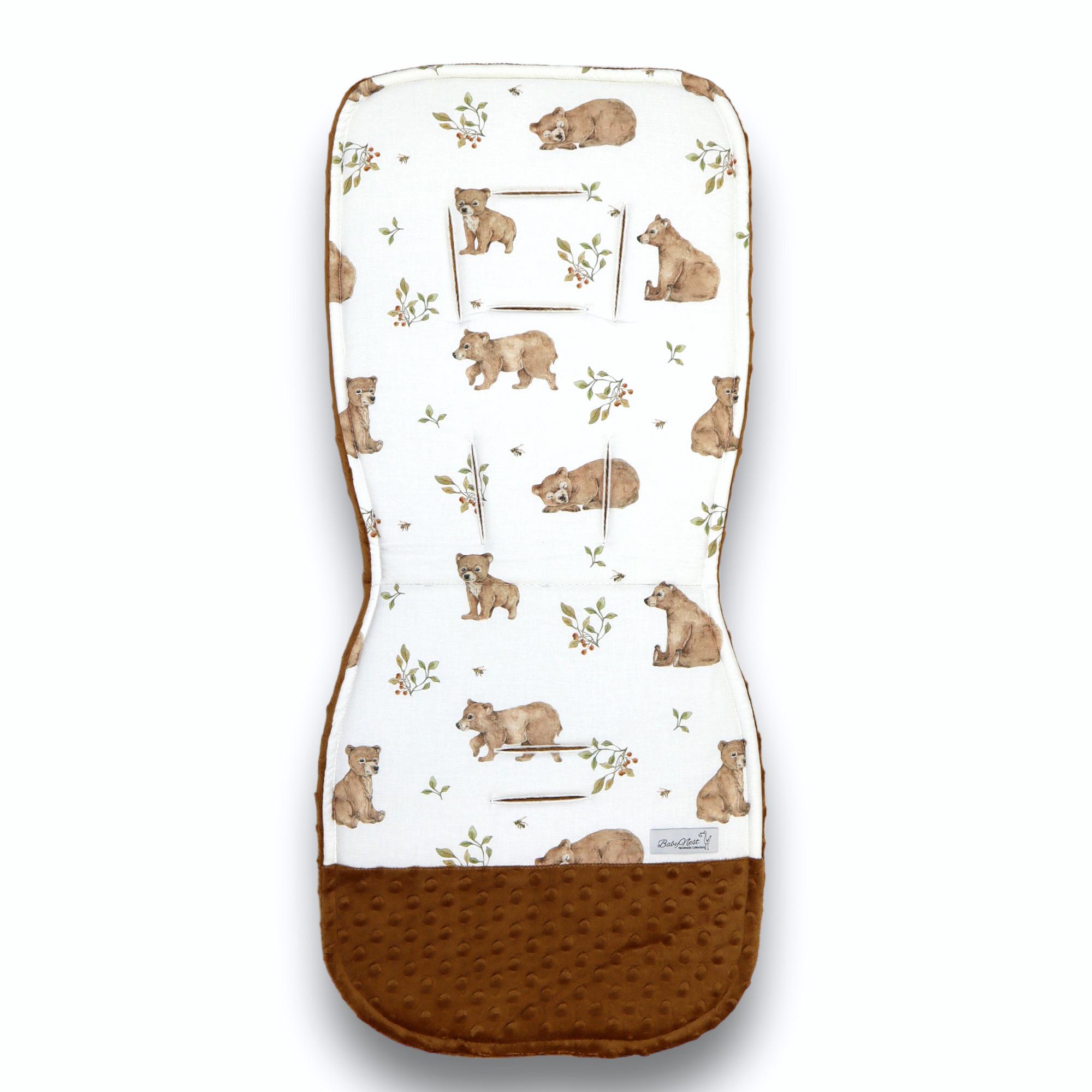 Coussin de siège de poussette et coussin anti-choc | Coton de qualité supérieure et tissu Minky | Ours heureux