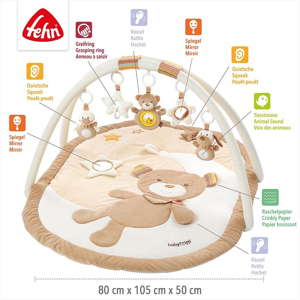 Arche de jeu avec 5 jouets amovibles pour bébés. Jouez et amusez-vous en position allongée, assise et en rampant, pour les bébés et les tout-petits à partir de 0 mois.