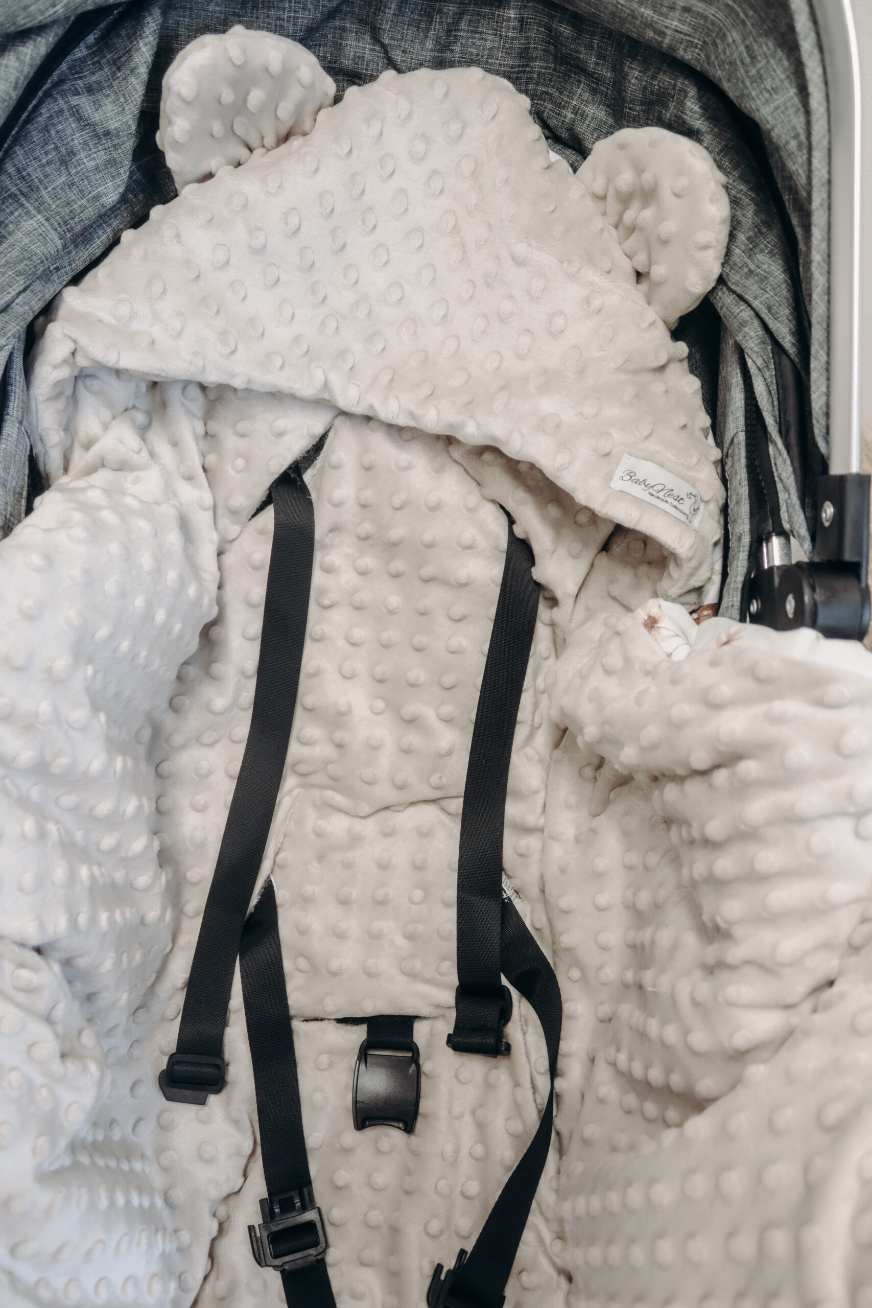 Accogliente coperta per seggiolino auto per passeggino o seggiolino auto realizzata in tessuto di cotone 100% Oeko-Tex Standard e velluto Minky. Puoi usarlo per avvolgere il tuo bambino durante i piccoli e grandi viaggi e gli darà una sensazione di calore e sicurezza. Il comodo cappuccio copre la testa del bambino e, se necessario, copre anche le orecchie sensibili. La coperta è dotata di fori per la cintura di sicurezza in modo che rimanga nel seggiolino auto quando il bambino viene tirato fuori.
