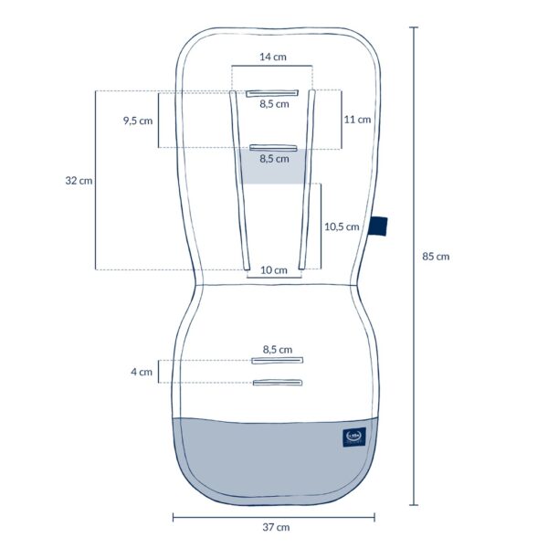 Si adatta facilmente a qualsiasi passeggino o passeggino. Serve anche come imbottitura aggiuntiva e assicura che il bambino sia seduto comodamente anche durante le passeggiate più lunghe.