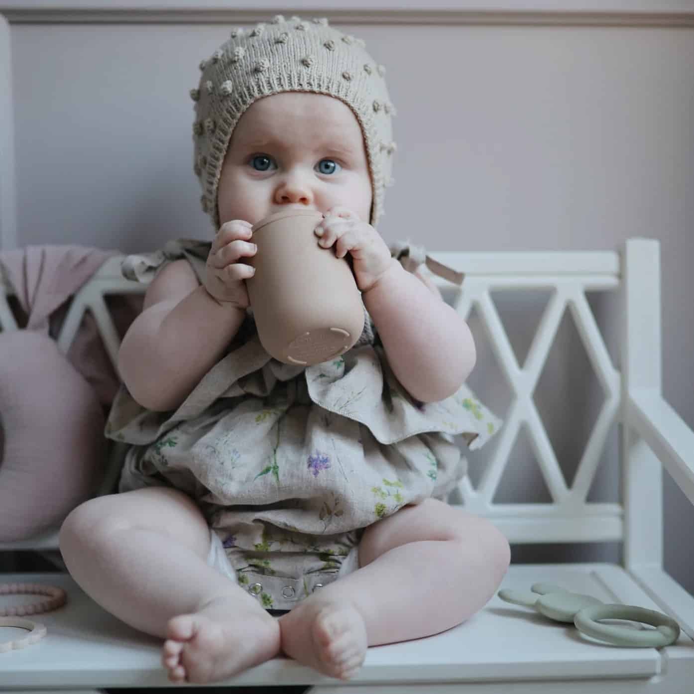 Con il bicchiere, i più piccoli possono imparare a passare al bicchiere aperto. Mushie dalla Danimarca crea bellissimi prodotti per bambini sostenibili.