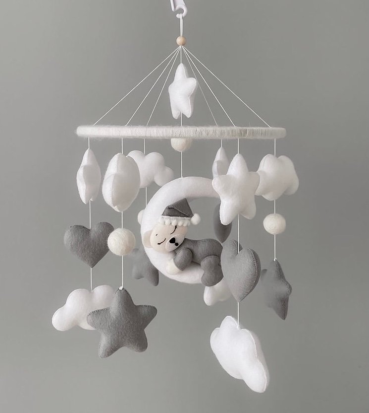La migliore giostrina per bambini, un'ottima decorazione per la cameretta dei bambini. Una giostrina in feltro unica e fatta a mano per il tuo neonato che stimola lo sviluppo visivo e aiuta il bambino ad addormentarsi.