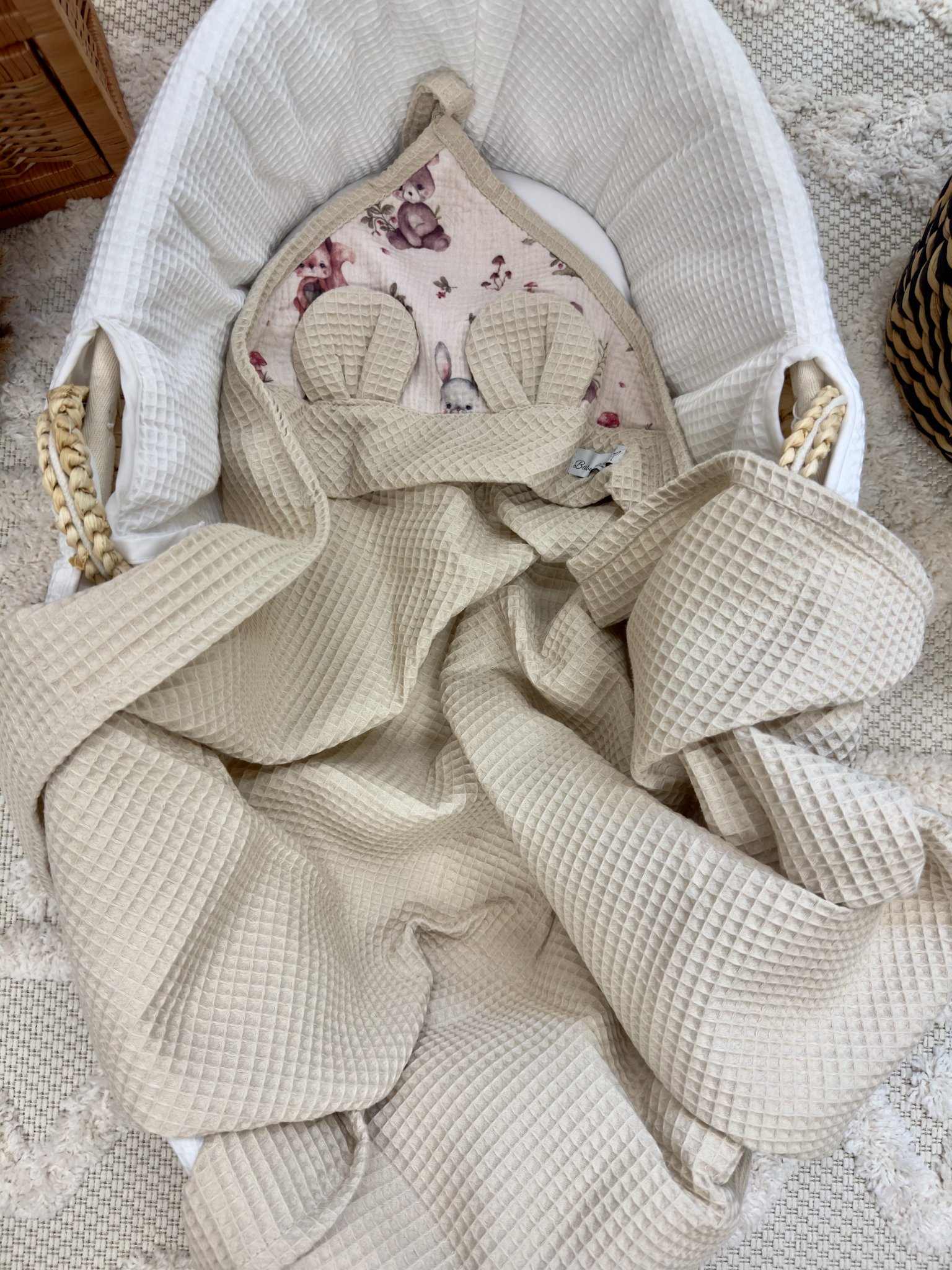 | Materiale | Cotone Oeko-Tex, doppia mussola premium, piquet waffle |