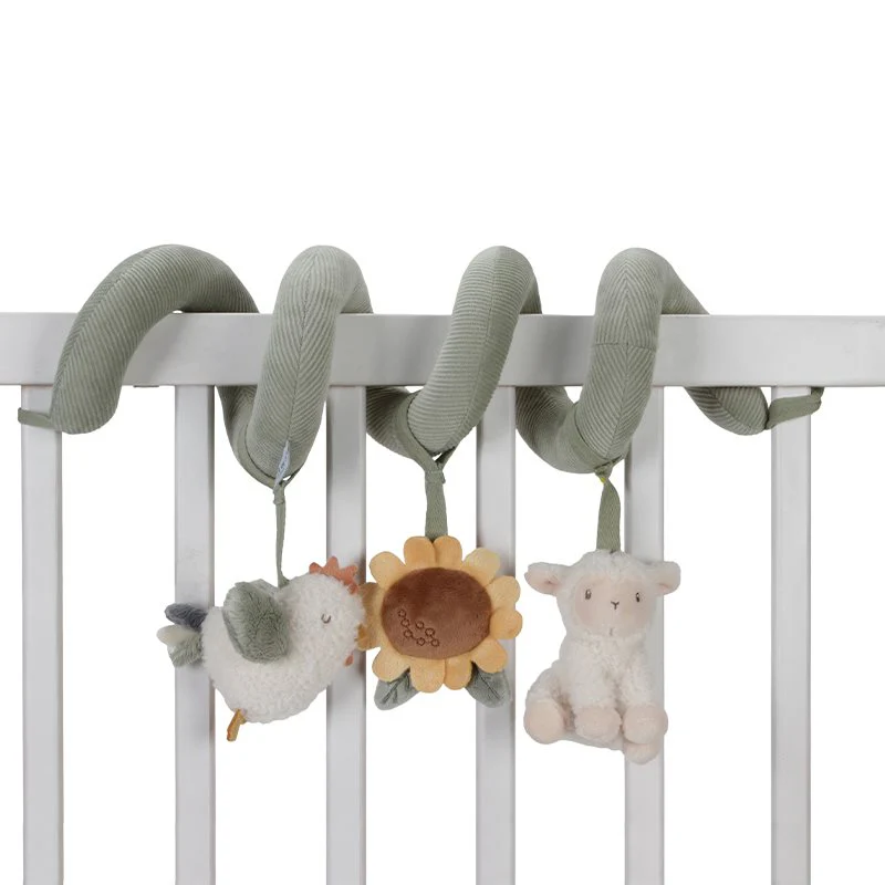 Schauen, fühlen und entdecken! Diese lustige und unterhaltsame Aktivitätsspirale wird Babys sowohl zu Hause als auch unterwegs beschäftigen. Dieses praktische Spielzeug lässt sich leicht an allem befestigen, vom Kinderbett bis zum Laufstall oder Autositz. Es stärkt die Sinne und fördert die Hand-Augen-Koordination. Die Aktivitätsspirale ist aus Kord mit Baumwolle gefertigt und dreht sich um ein kleines Schaf, ein fröhliches Huhn und eine hübsche Sonnenblume.