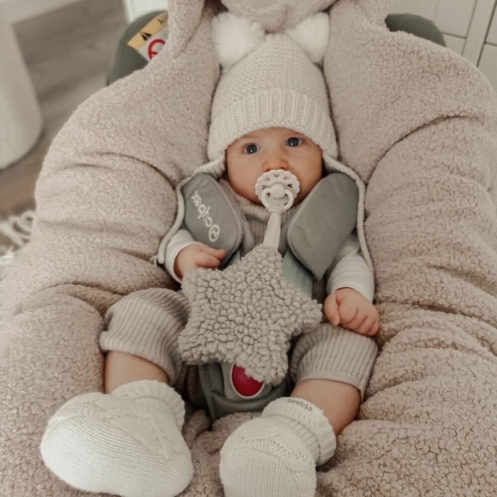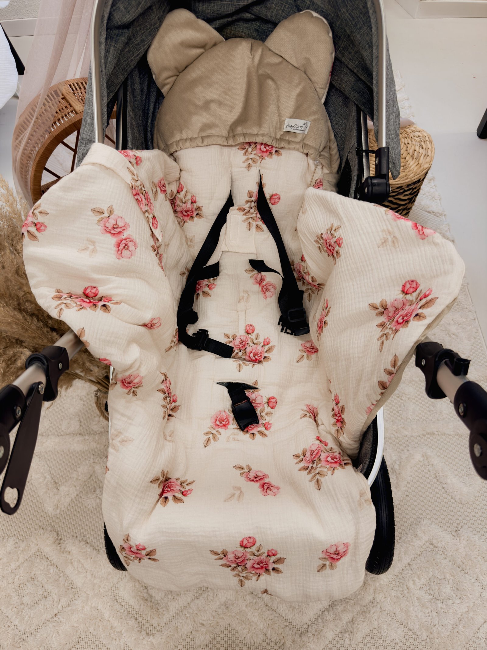 Kuschelige Autoschale Decke für den Kinderwagen oder Autositz aus 100% Öko-Tex Standard Musselinlstoff und Veloursstoff .