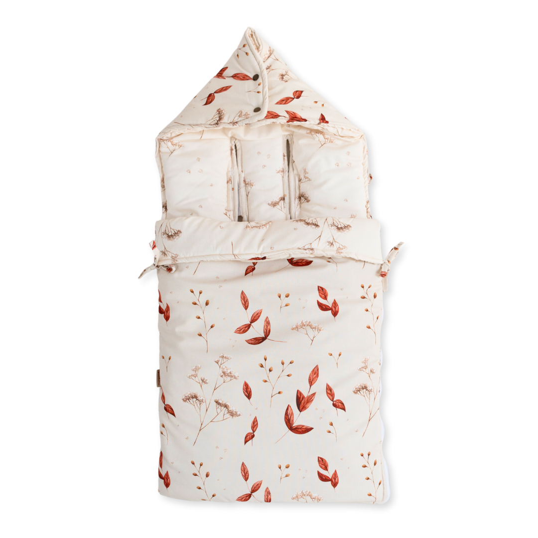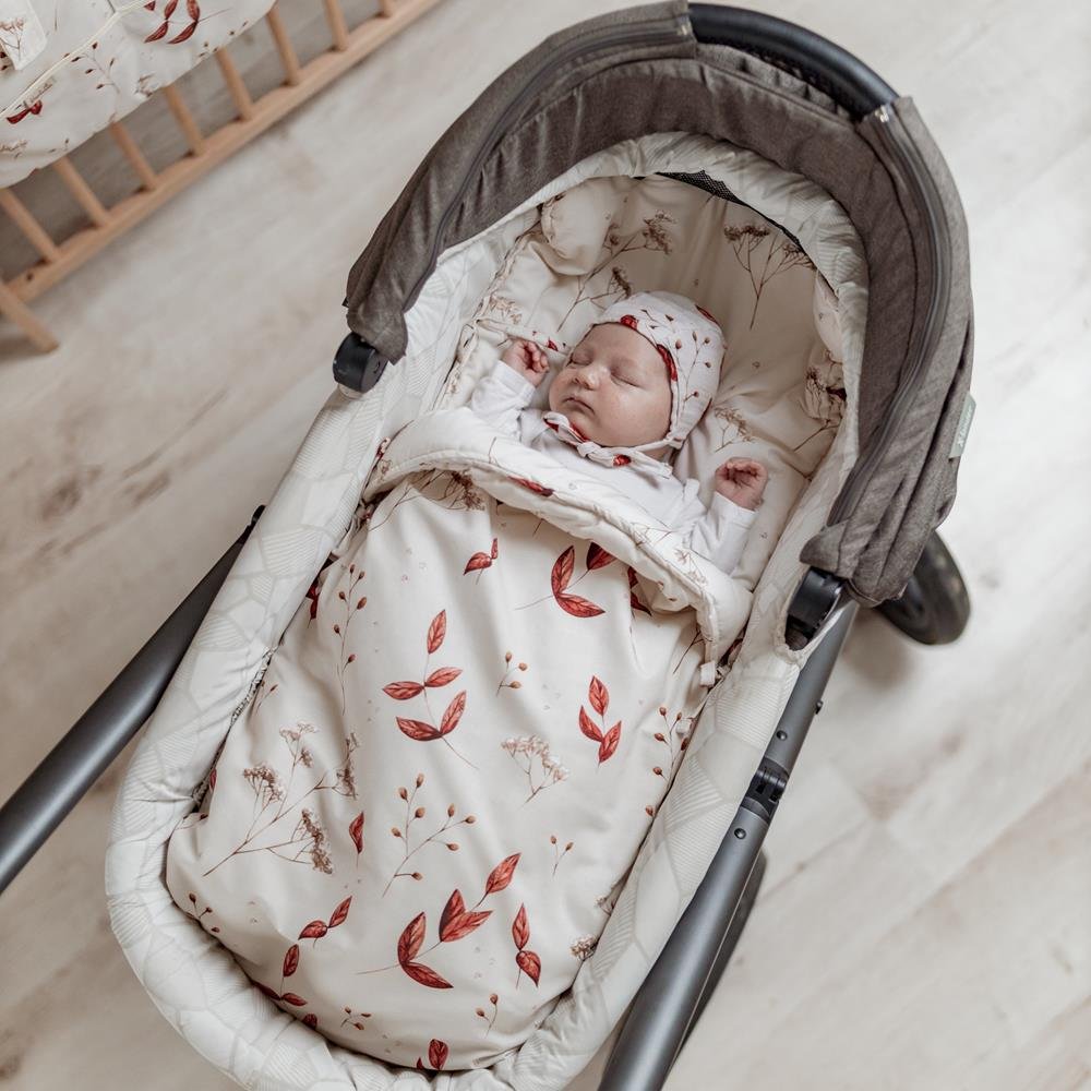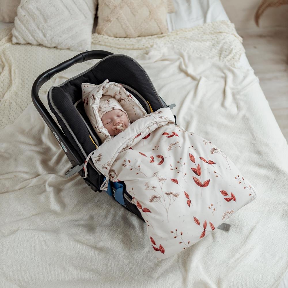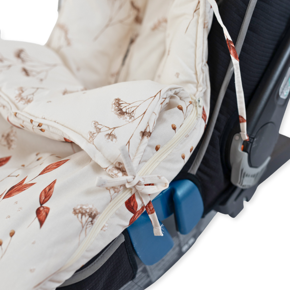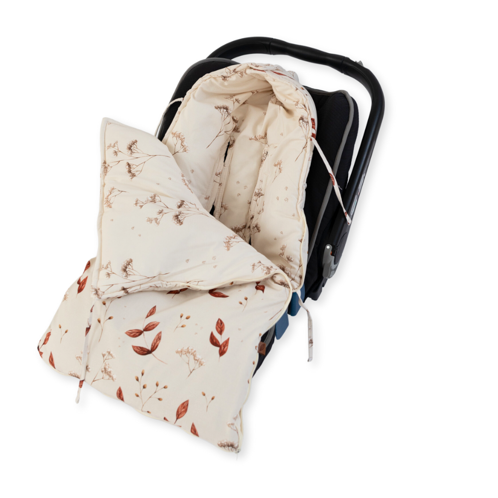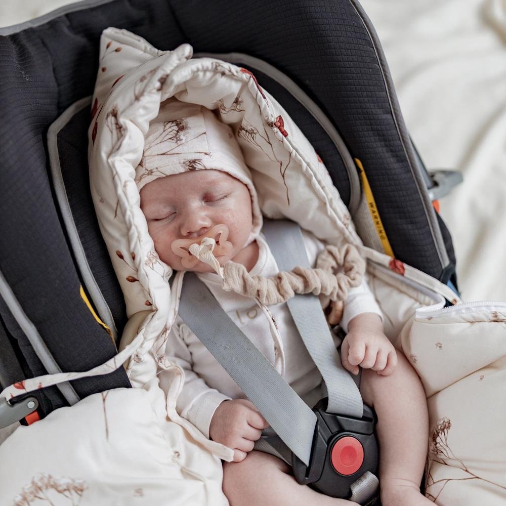 Die Decke hat eine universelle Grösse und passt auf Autositze und Kinderwagen mit 3- und 5-Punkt-Gurten.
