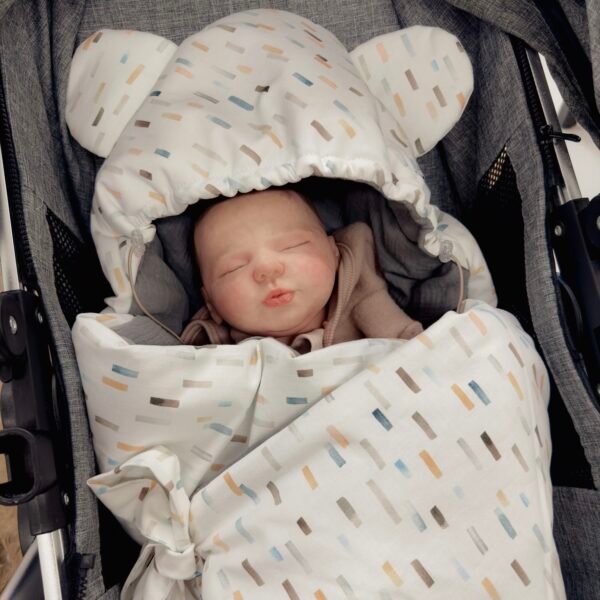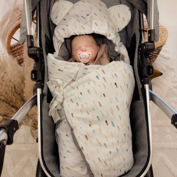 Die Decke kann auch als Schlafsack im Kinderwagen oder als Bettdecke im Bett verwendet werden.
