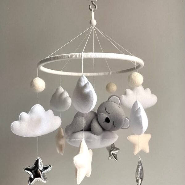Das beste Baby mobile, eine tolle Dekoration für das Kinderzimmer. Ein einzigartiges, handgefertigtes Filz-Mobile für Ihr Neugeborenes, das die visuelle Entwicklung anregt und dem Baby hilft, sich selbst in den Schlaf zu wiegen.