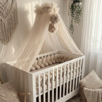Betthimmel Tüll Beige mit 2 Pompons