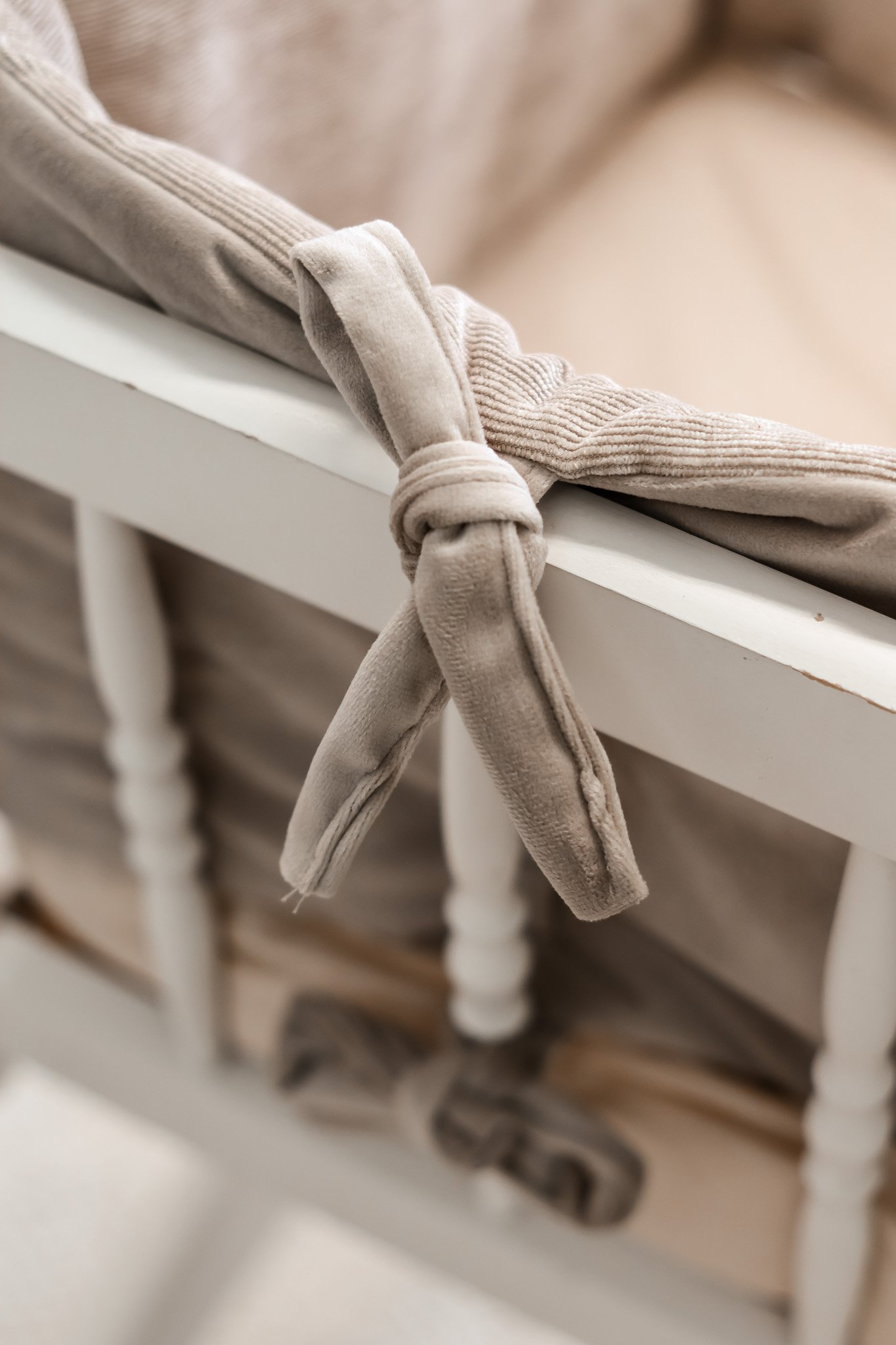 Jedes Kind verdient eine elegante und sanfte Bettumrandung. Unsere Bettumrandung besteht vollständig aus hochwertiger Cord-Velous . Diese liebevoll gestaltete Umrandung schafft nicht nur eine behagliche Atmosphäre, sondern bietet auch die perfekte Kulisse für einen ruhigen Babyschlaf.