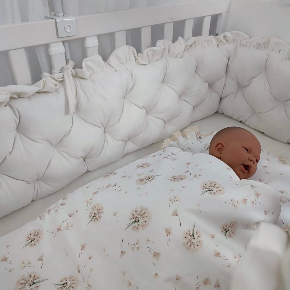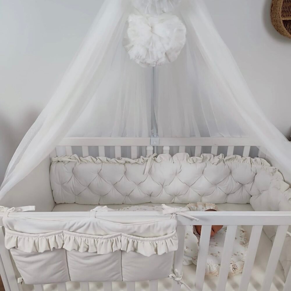 Jedes Kind verdient eine elegante und sanfte Bettumrandung. Unsere Bettumrandung besteht vollständig aus hochwertiger Samt . Diese liebevoll gestaltete Umrandung schafft nicht nur eine behagliche Atmosphäre, sondern bietet auch die perfekte Kulisse für einen ruhigen Babyschlaf.