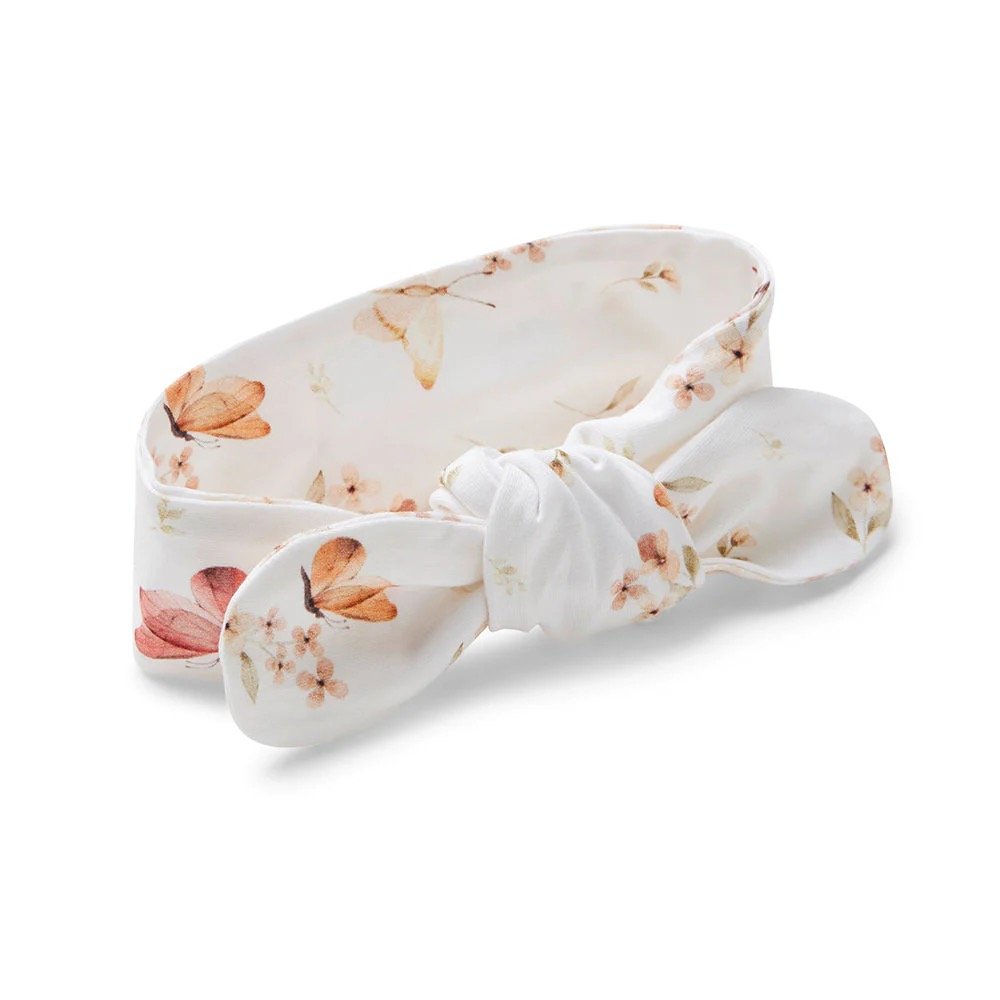 Der Butterfly Organic Cotton Topknot von Snuggle Hunny ist das perfekte Accessoire und lässt sich wunderschön mit unserer „In The Garden“-Kollektion kombinieren – darunter Wraps, Kleider, Growsuits und Bodysuits.