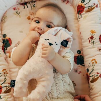 Dank seiner handlichen Groesse ist der Teddy perfekt fuer kleine Babyhaende und ein idealer Begleiter – ob im Kinderwagen, im Kuschelnest, im Babybett oder unterwegs. Hergestellt aus 100 % zertifizierter Bio-Baumwolle, ist er besonders weich, sicher und sanft zur empfindlichen Babyhaut.